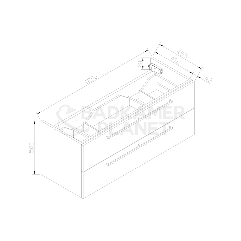 - Bovenste lade met 1 sifonuitsparing (bij de 120cm variant zitten er 2 uitsparingen)