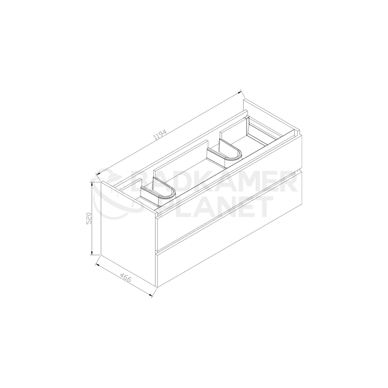 - Bovenste lade met 1 sifonuitsparing (bij 120cm meubel zitten 2 sifonuitsparingen)