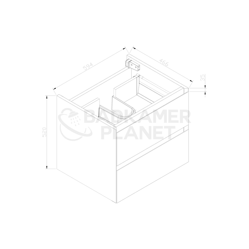 - Bovenste lade met 1 sifonuitsparing (bij 120cm meubel zitten 2 sifonuitsparingen)
