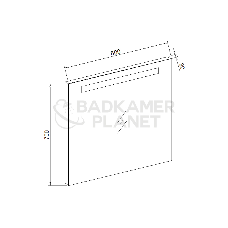 Afmetingen spiegel80x70x3 cm