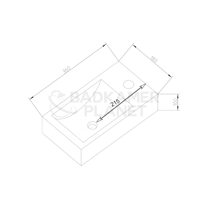 Fonteinset Hardstenen Recto Mini met Kraan, Afvoer en Sifon Gun Metal 36x18x10 cm Kraangat Links