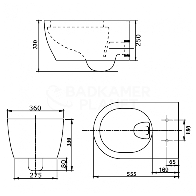 - Materiaal wandcloset: keramiek