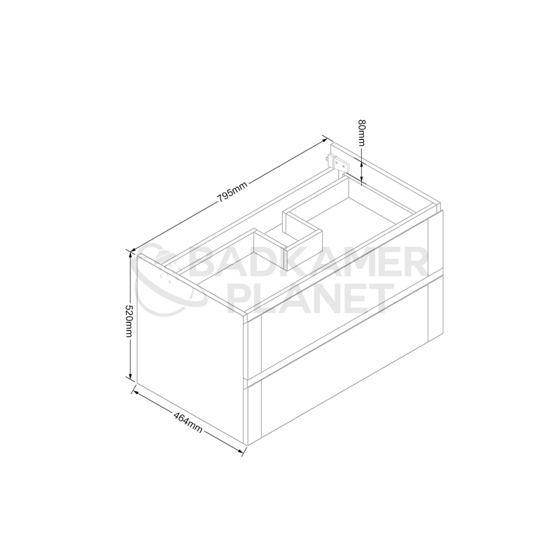 - Bovenste lade met 1 sifonuitsparing (bij 120cm meubel zitten 2 sifonuitsparingen)