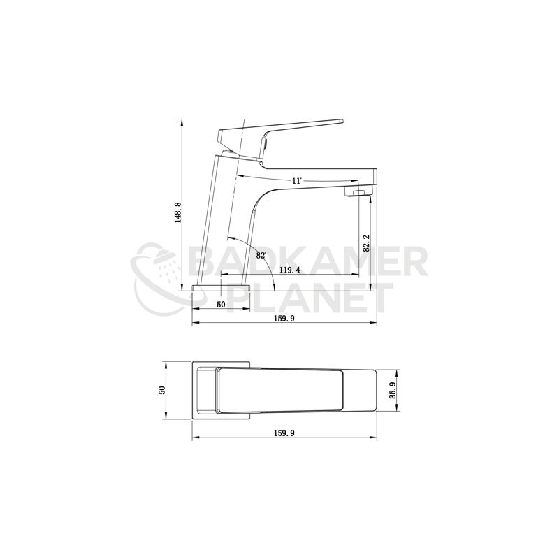 Hoogte kraan14,8 cm