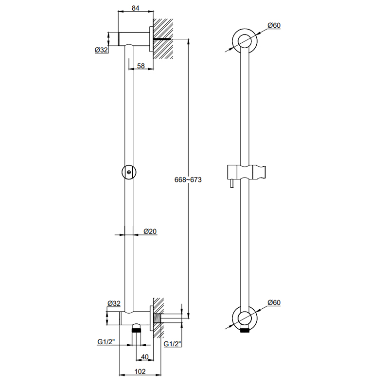 - Handdouche in hoogte verstelbaar door glijstang met wateraansluiting