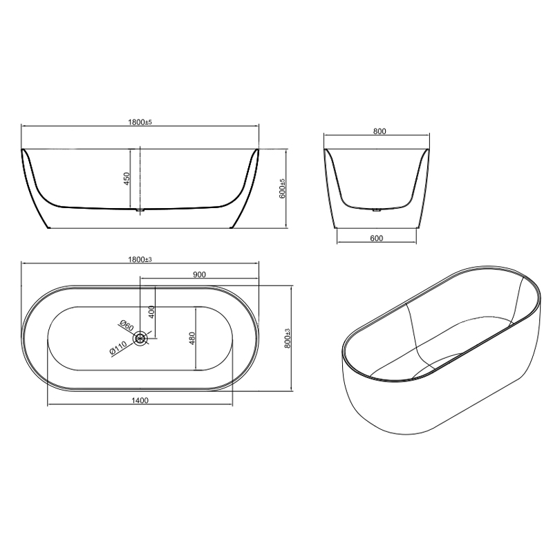 De luxe vrijstaande bad 180x80x60 cm wit hoogglans midden is een zeer modern bad die in het midden vrij van de muur geplaatst kan worden. Dit bad is gemaakt van acryl, heeft een witte binnenkant. Door de dunne sterke rand geeft dit bad een moderne en elegante uitstraling. Dit past zeer goed in een modern ontworpen badkamer. Doordat er glasvezel is gebruikt voor versteviging, is het bad extra stevig. Het bad is dubbelwandig, dit houdt in dat het warm water tijdens gebruik langer warm blijft. Het overloopgat is een strak afgewerkt rechthoekige gleuf. Ook is er een klikplug meegeleverd, deze kunt openen en sluiten door op de bovenkant te drukken.