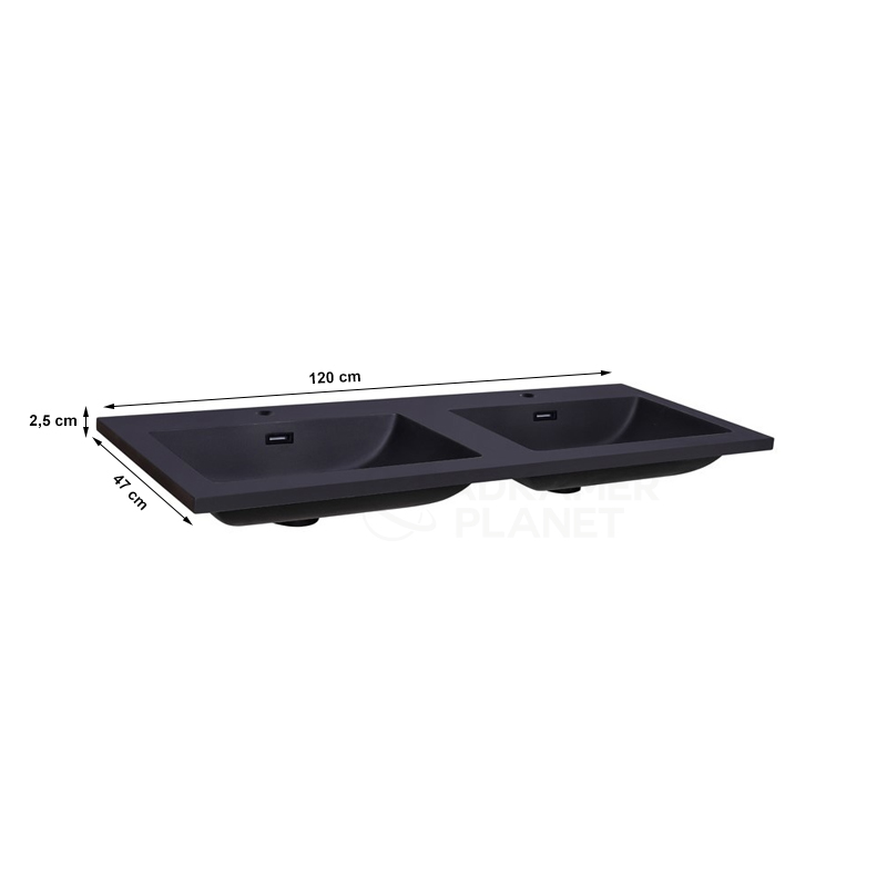 Zoekt u een luxe wastafel mat zwart? De wastafel 120 cm Quartz Classic is een mooie luxe wastafel gemaakt van quartz. De wastafel is 120 cm breed, 47 cm diep en 2,5 cm hoog. Deze mat zwarte wastafel heeft een dubbele wasbak met een extra dunne rand en is te combineren met verschillende onderkasten. Maar ook te gebruiken voor een maatwerk onderkast of een topblad/plateau. Beschikbaar in verschillende afmetingen.